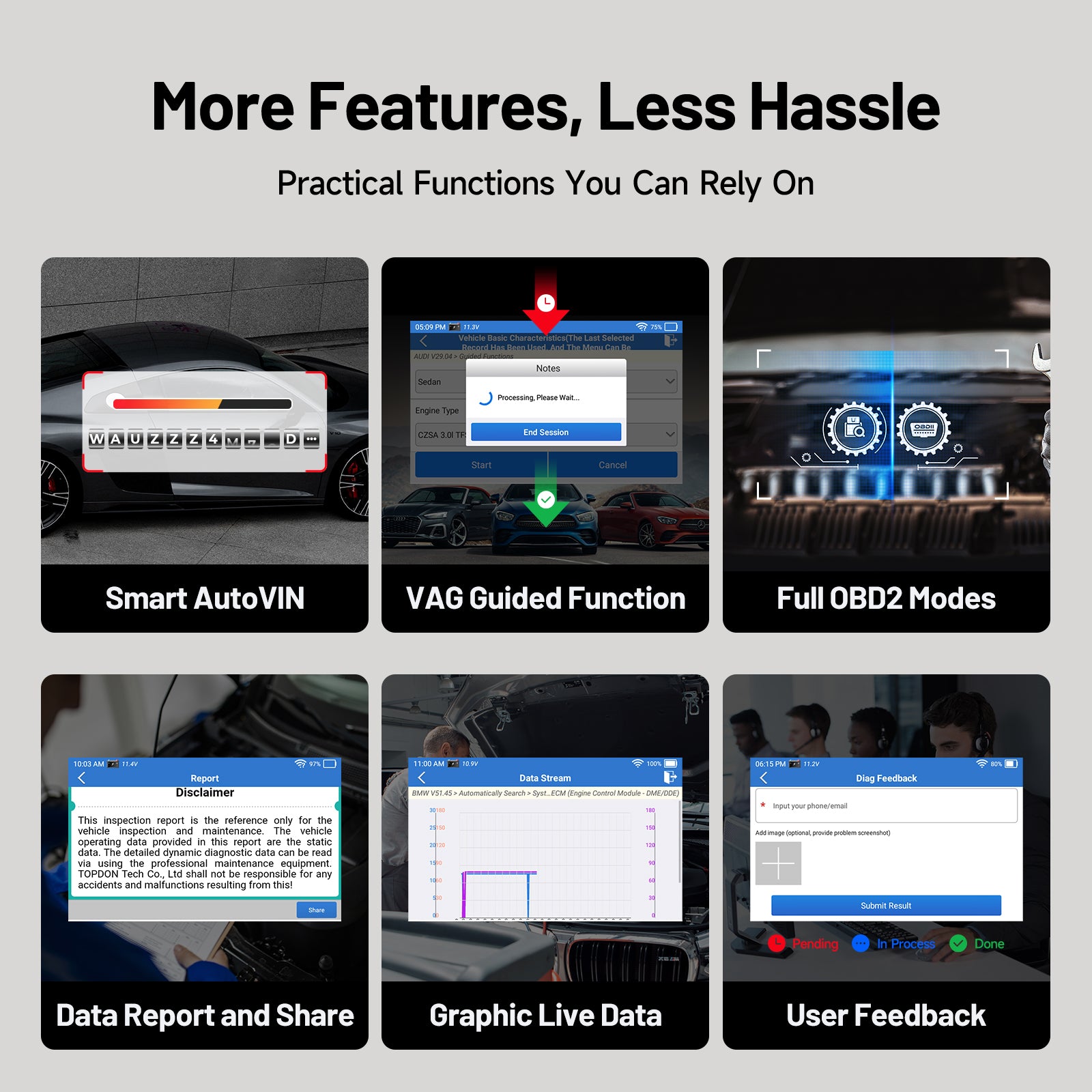 Meet the ArtiDiag EU, TOPDON’s car diagnostic tool tailor-made for 15 vehicle models including BMW, Mercedes-Benz, VAG and their affiliated brands.