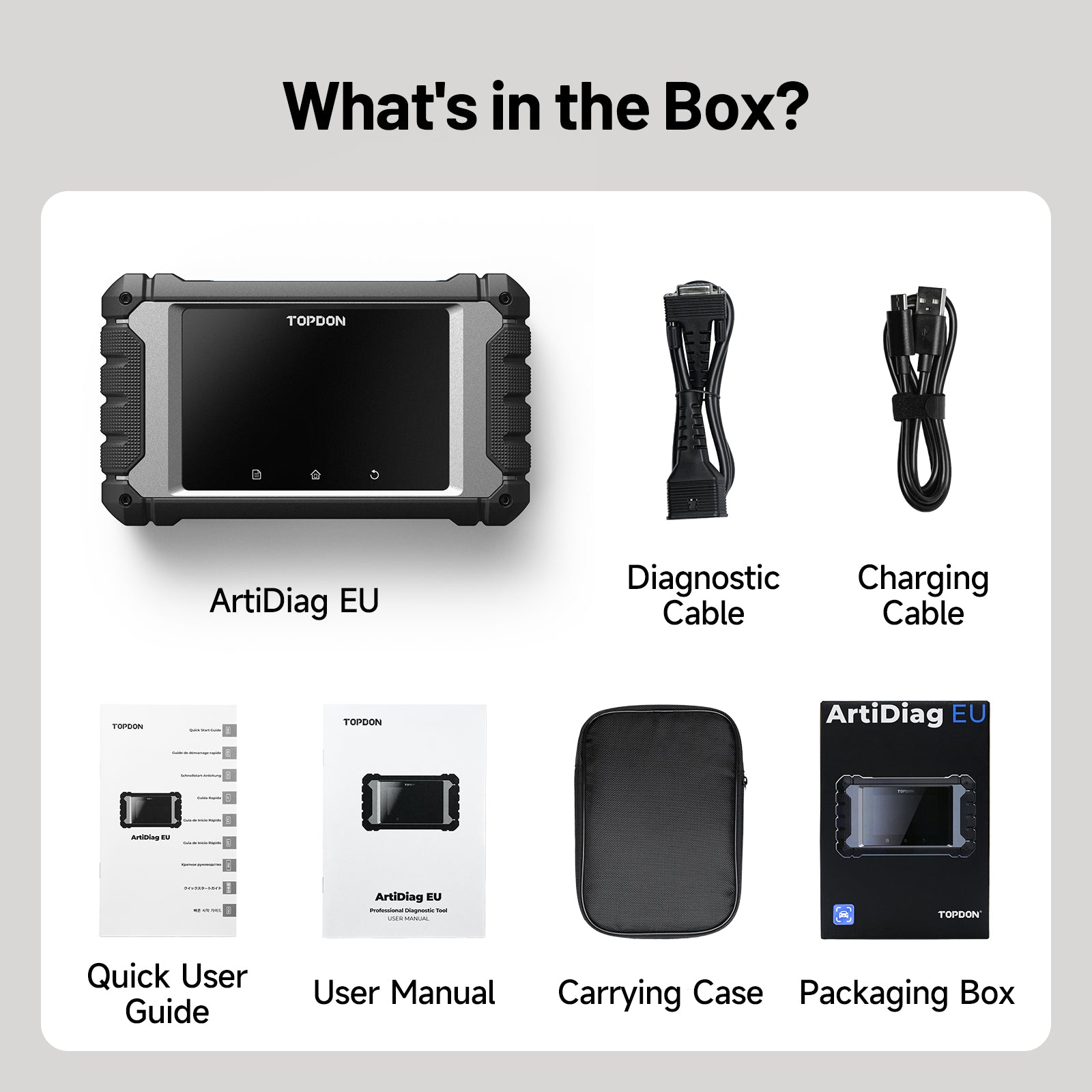 - Compact and designed for peace of mind, the ArtiDiag EU fits perfectly in your toolbox. Whether you’re on the road or in the garage, this portable tool is always within reach, ensuring you’re prepared for unexpected repairs anytime, anywhere.