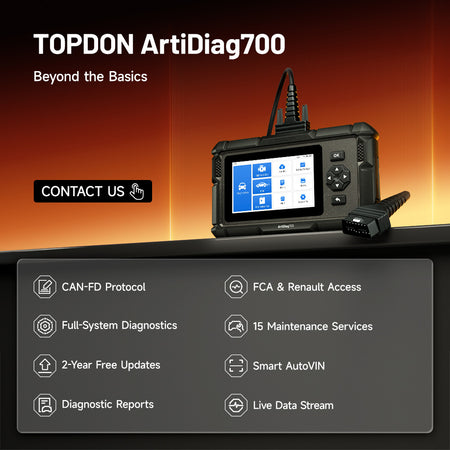 The TOPDON ArtiDiag700 seamlessly blends power and simplicity into a single, indispensable diagnostic tool. Supporting CAN-FD, FCA SGW, and Renault SGW Unlock, it provides access to full-system diagnostics for over 70 vehicle brands, including the latest models. Features like AutoVIN, real-time data streaming, and 15 maintenance services enable rapid issue identification and resolution.