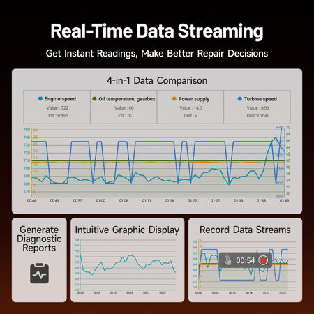 - Real-time data monitoring provides a crucial window into your vehicle's performance. Track essential parameters like engine RPM, speed, throttle position, and more, all displayed in intuitive graphic formats. This immediate access to live data empowers you to make informed diagnostic decisions.