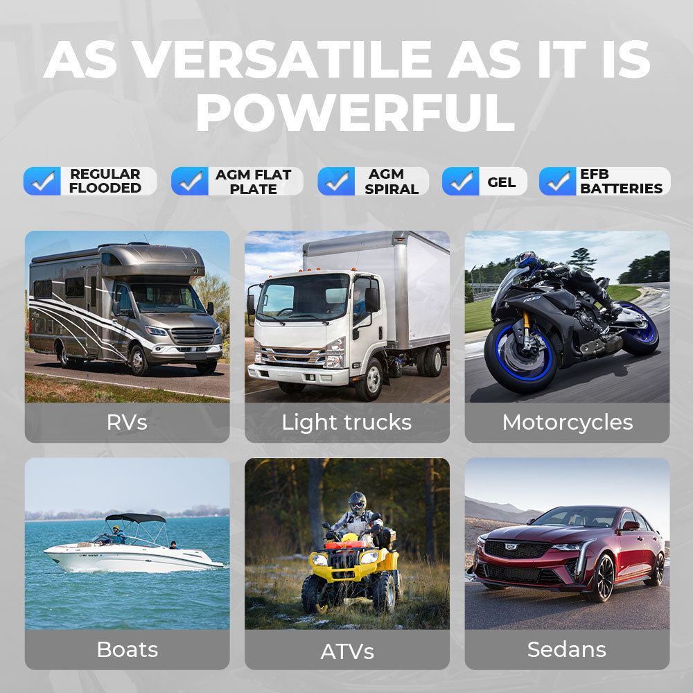 - Test regular flooded, AGM flat plate, AGM spiral, GEL, EFB