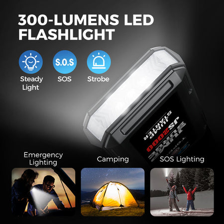 - 2000 Peak cranking amps lets you provide lifesaving jumps in seconds!