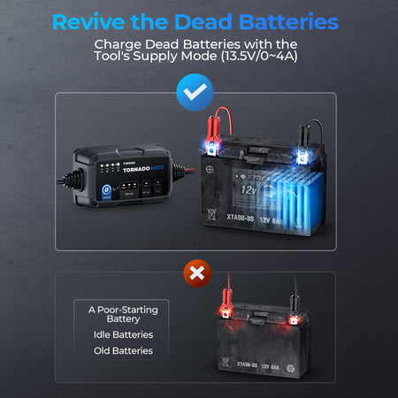 - Utilizing pulse-width modulation to break down the sulfates in an aging battery, the Tornado4000 can restore the battery resistance efficiently and prolong service life, reviving the battery and bringing it back to a suitable state-of-health.