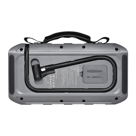 Introducing the V2200Air, the ultimate all-in-one solution for every car owner's emergency needs. This versatile device allows you to jump-start your car, inflate your tires, charge your devices, and illuminate your surroundings with ease. With an impressive 2200A peak current, it can start engines up to 8.0L gas or 6.0L diesel in just 2 seconds. The integrated air pump inflates tires in under 3 minutes, ensuring you're back on the road swiftly. Stay prepared for any situation and drive with confidence, knowing the V2200Air has you covered.