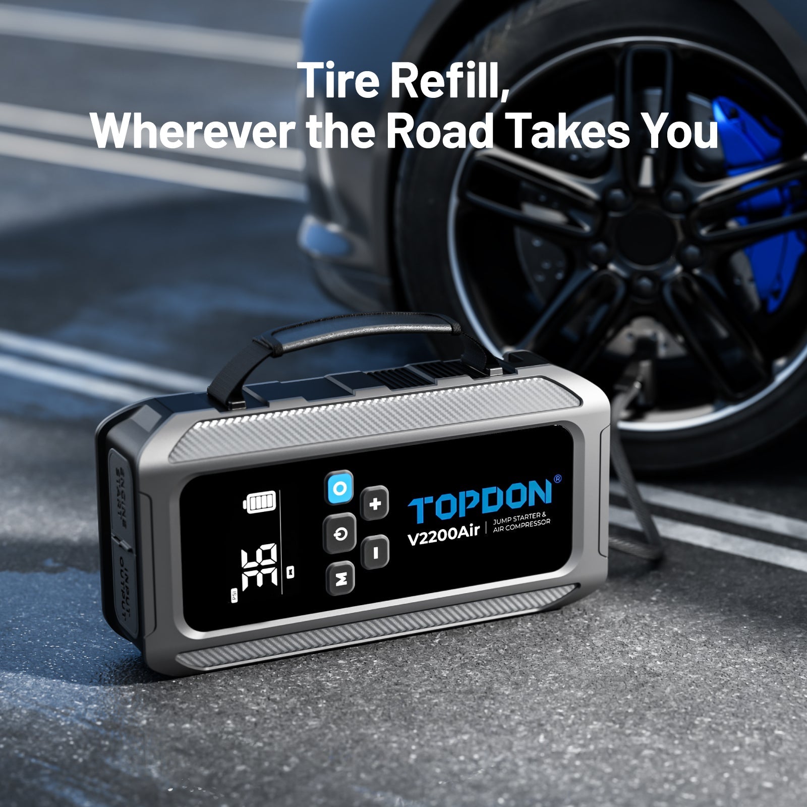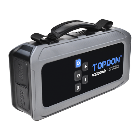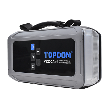 - The V2200Air delivers a powerful 2200A peak current, capable of jump-starting vehicles with engines up to 8.0 liters for gasoline or 6.0 liters for diesel in just 2 seconds. Whether you're stranded in a remote location or dealing with a dead battery during a busy day, this robust device ensures you can swiftly get back on the road without delay.